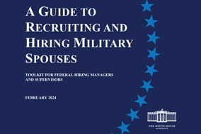 Guide to Recruiting and Hiring Military Spouses supports military and veteran spouses, caregivers, and survivors, with a focus on military spouse economic opportunity, military child education, and health and well-being. The Guide was created to ensure Federal hiring managers are better equipped with available resources they can leverage to support the military-connected community.