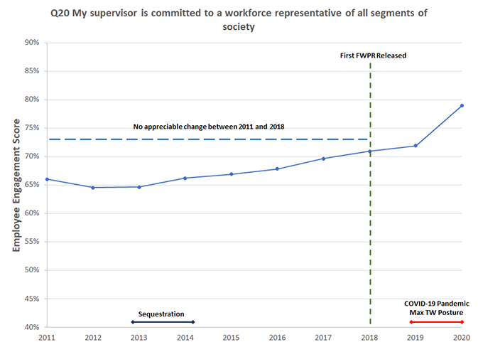 Q20: My supervisor is committed to a workforce representative of all segments of society. |