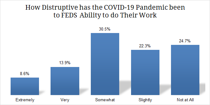 Responses on the FY 2020 FEVS reflected the resilience of employees during an unprecedented time. Based on the survey results, the federal workforce demonstrated that, despite the uncertainties and hardships encountered throughout COVID-19, they remain committed to accomplishing critical work to ensure that public services continued to be delivered to the American people.